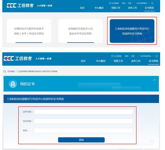 登录工信部教考中心官网,进入「证书查询→培训评价证书」,输入姓名、身份证号、证书编号,一键核验,全国联网查询,信息永久存档,求职求职直接出示。