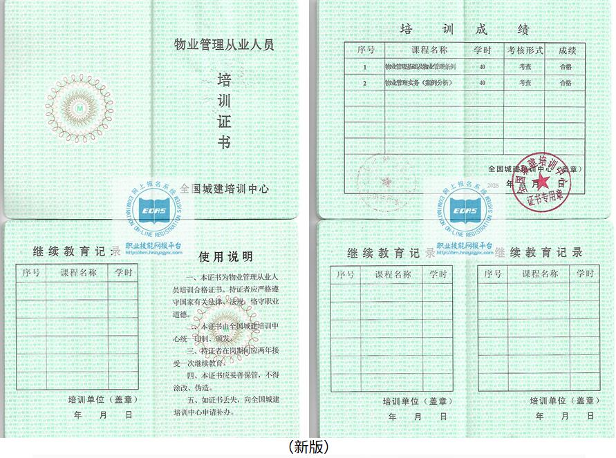 物业企业项目经理证书为纸质证书,上面会有全国城建培训中心的名称、证书编号、持证人的个人信息(如姓名、身份证号等)、岗位职务(物业项目经理)以及发证机关的盖章等内容。证书查询网址为全国城建培训中心官网。